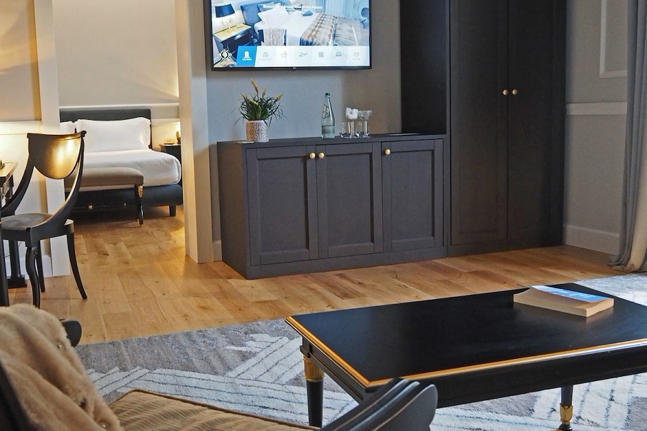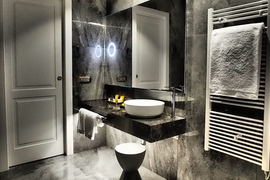 In the sumptuous halls, the past dialogues with present, in a multitude of fine works, refined fabrics, antique and modern furnishings, harmoniously integrated in the extensive restoration.