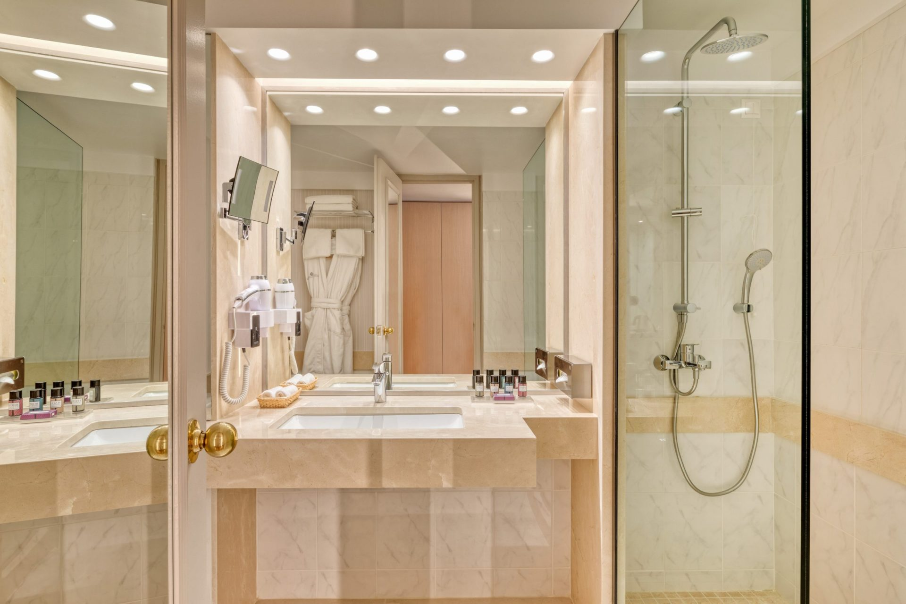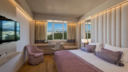 With one king or two single beds and shower. Features a view of the city, park or Lycabettus Hill.