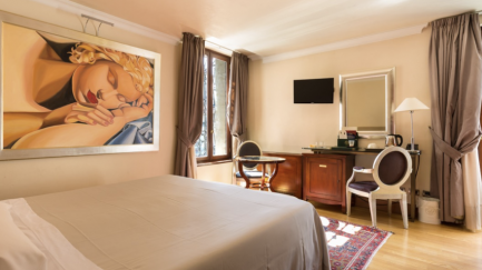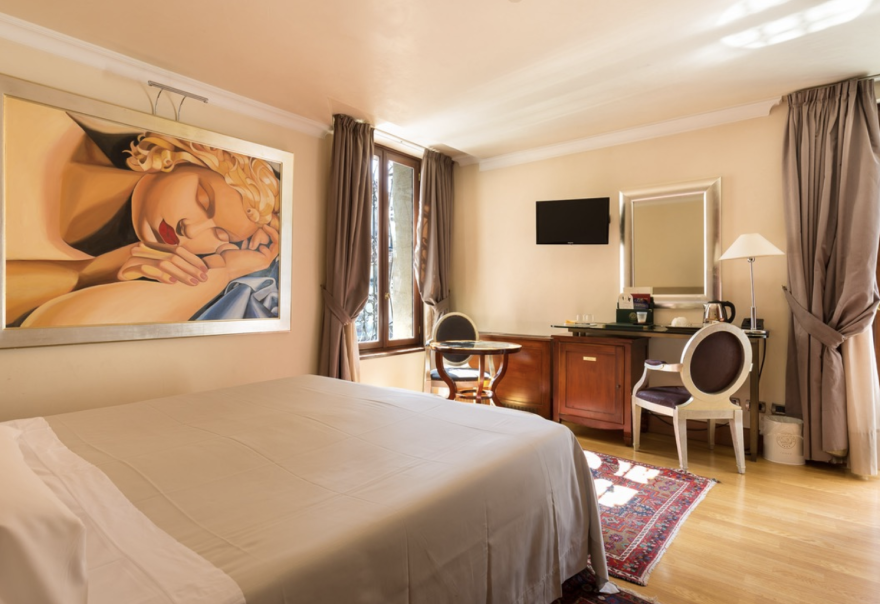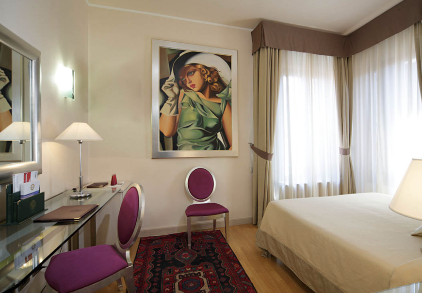 On the border between the Castello and San Marco districts, inside the restored Gothic palace ' Zorzi dalle Colonne Storte ', you will experience the romantic atmosphere of ancient Venetian residences, with large rooms, embellished with stunning reproductions by artists - oil on canvas - of the masterpieces that have characterized the history of the pictorial art of the last century.
