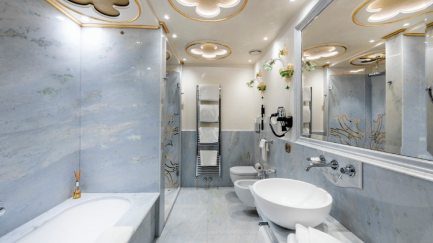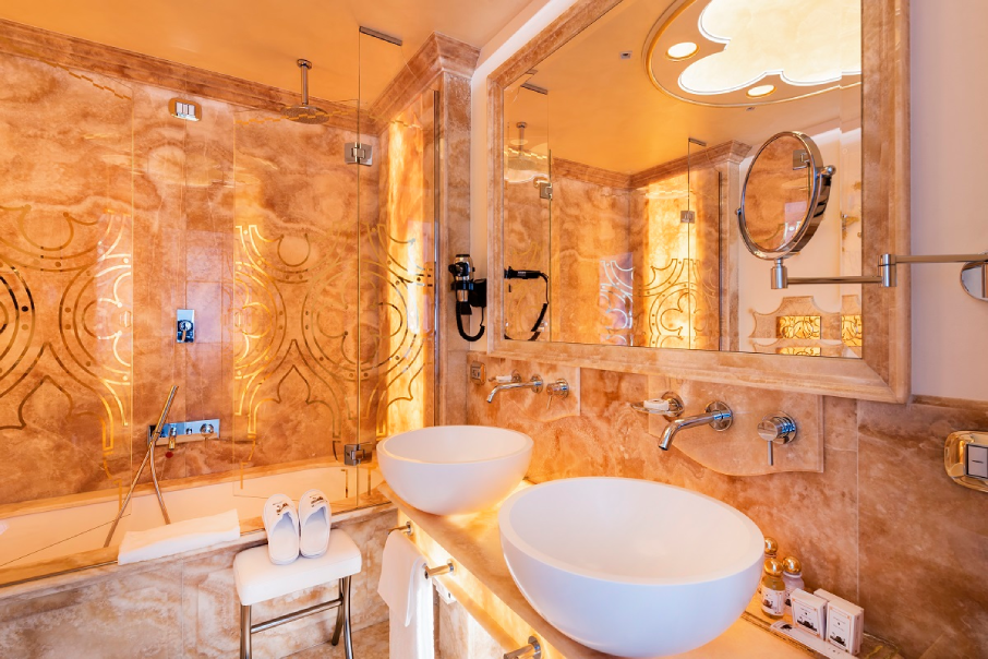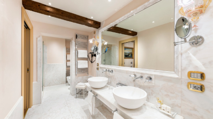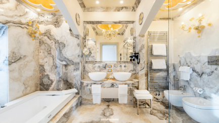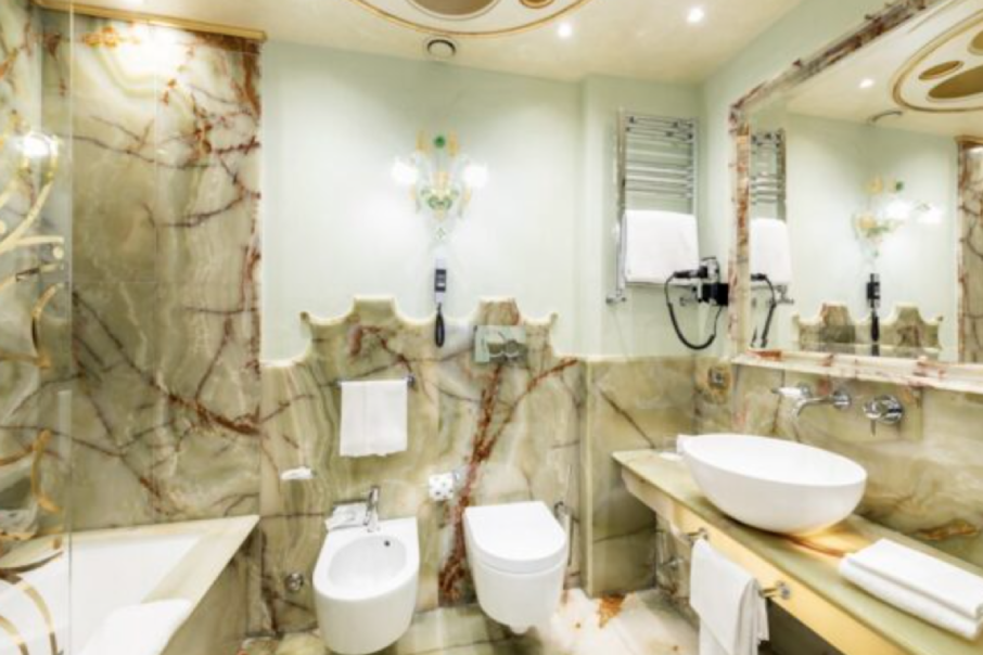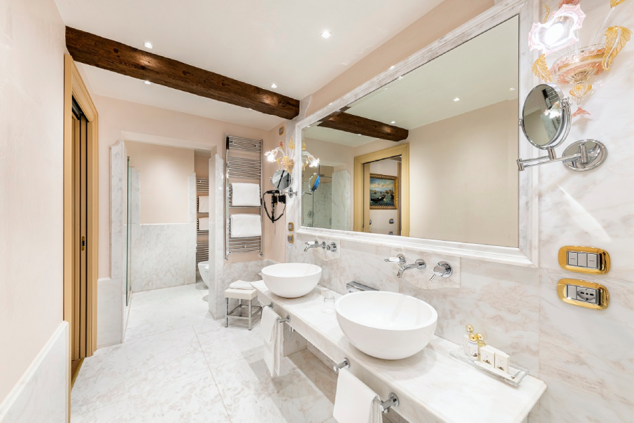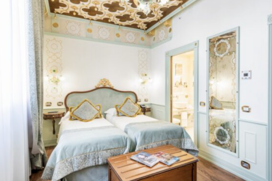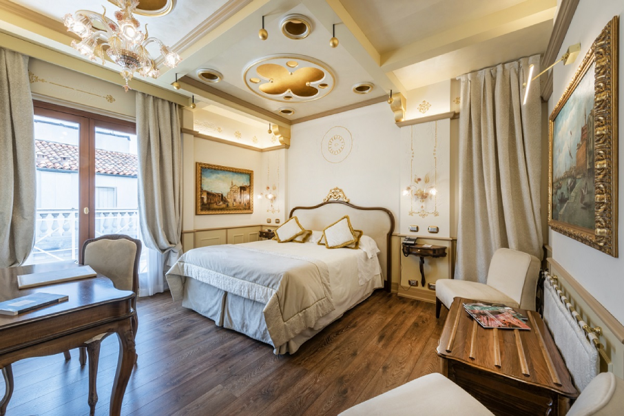 They are elegant and sober; the Venetian style is represented by precious fabrics, murrine, mosaics, and sumptuous chandeliers.