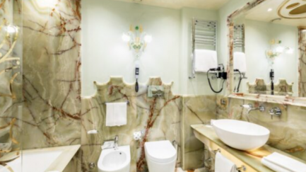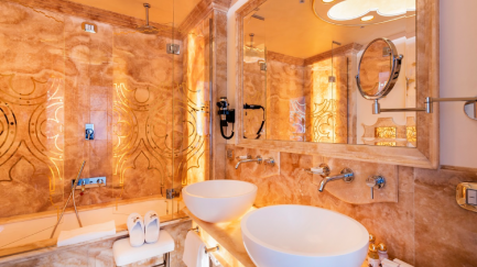 With a double bed and bathtub and shower. Features a view of San Marco’s basin and the Grand Canal