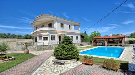 Acharavi Beach Villa is for sure one of the finest and most luxuriour properties of this seaside resort. Built to the highest standard, making wide use of precious marbles, wood and stone, this seaside villa rental is a superb retreat for up to 10 hosts who are looking for an unforgettable holiday just steps away from the sea, sandy beach and a wide array of shops, restaurants, bars. Surrounded by extensive gardens with lawn, beautifully laid out, and equipped with a generously sized private pool, Acharavi Beach Villa will be able to leave speechless even the most demanding guests. The spacious interiors (of around 300 sqm) are surrounded by extensive terraces and the wide gardens have plenty of space for relaxing, sunbathing, or dining al-fresco using the superb barbecue with pizza oven provided: this is a true rarity for a villa in such a central location!