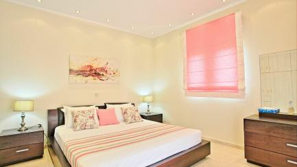 The outdoor areas of the villa, equally impressive, are completely fenced. The private swimming pool measures 10m x 5m (Roman Steps, depth 1.5m) and is surrounded by beautifully kept gardens with lawn. Comfortable sunbeds for all the guests and parasols are provided. The lovers of al-fresco dining will truly fall in love with the huge outdoor kitchen, equipped with brick-built barbecue and even a wood burning oven! Table and chairs for enjoying long meals under the Greek sky are provided both by the barbecue and in the rear terrace. The grounds are beautifully lit at night, for further enjoyment. Secure parking for 2 cars is also available.