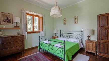 This country house offers tasteful furnishing and all amenities. With 4 bedrooms and bright, spacious interiors, it can accommodate up to 9 people. Casale Condottiero’s beautiful garden boasts magnificent sweeping views of the surrounding hills. The fenced-in pool is equipped with sun loungers and umbrellas for enjoying the hot summer days. Thanks to the furnished terraces, guests can comfortable savor meals outside.