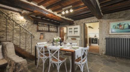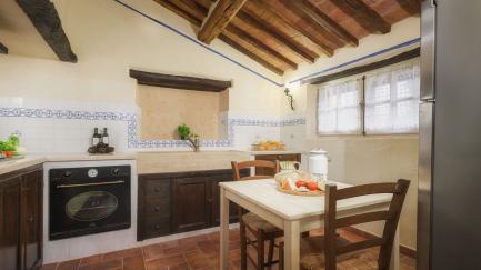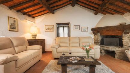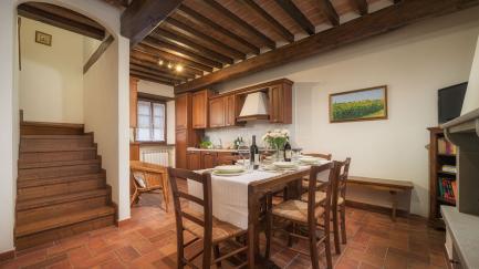 The property is made up of two stone houses that are close to each other and rented together to one group of friends or family at a time. Each of the two units has 3 bedrooms; in total they can comfortably accommodate up to 10 people in tastefully furnished, Tuscan interiors.