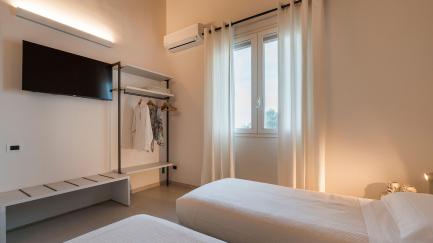 At guests’ disposal: private pool (12 x 5 meters; depth: 1,40 meters); 4 units for a total of 7 bedrooms and 7 bathrooms, sleeps up to 14; 2 gazebos with cane pergolas, and a table and chairs for dining outside; gazebo with shade canopies, equipped for dining outside; barbecue; sunbathing area; private garden with various relaxation areas; common room with a kitchen and table for eating all together; Wifi internet; air conditioning in all rooms; parking.