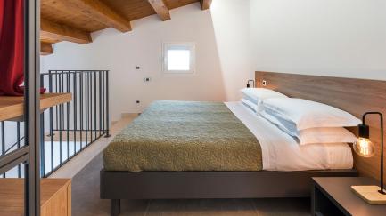 The four units have, respectively, 1 bedroom, 2 bedrooms, 2 bedrooms, and 2 bedrooms; in total the property can comfortably accommodate up to 14 people.