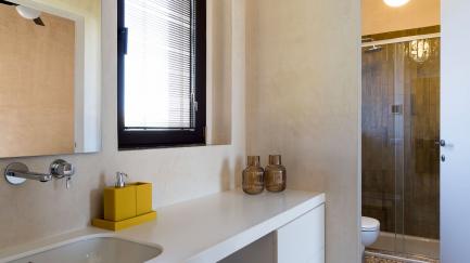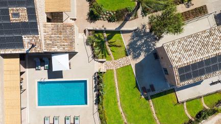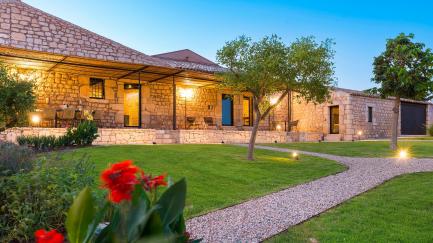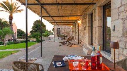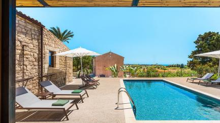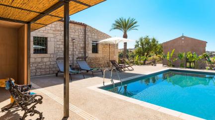 Outside, the villa is nestled in a well tended garden with traditional dry stone walls and a large variety of Mediterranean scrub plants and trees.