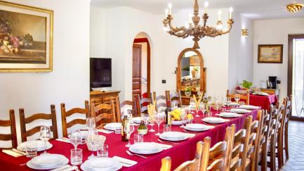 Spanning three floors, this exclusive rental comfortably accommodates up to 22 guests. It features 10 bedrooms, 8 bathrooms, a double sofa bed, and a fenced, panoramic garden with a spacious private swimming pool (7.5m x 3.5m; depth: 1.4m). Next to the main pool, a large hydromassage bath (3.5m in diameter, 0.8m deep) offers a relaxing retreat with breathtaking views.