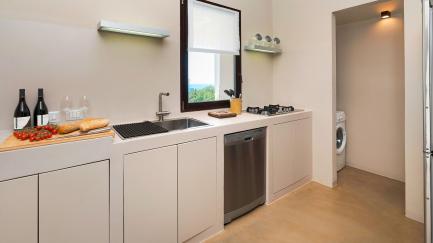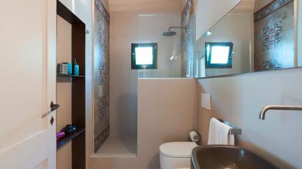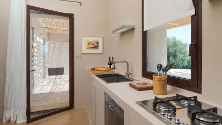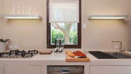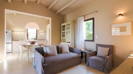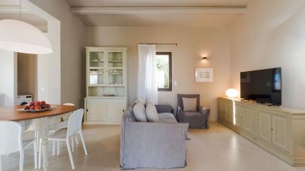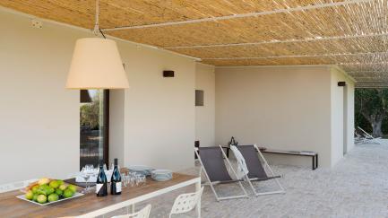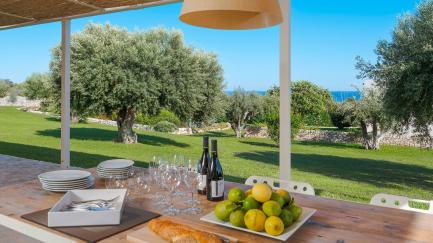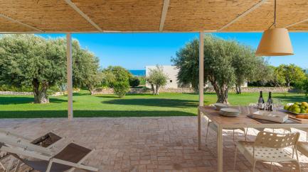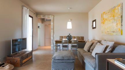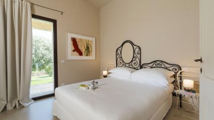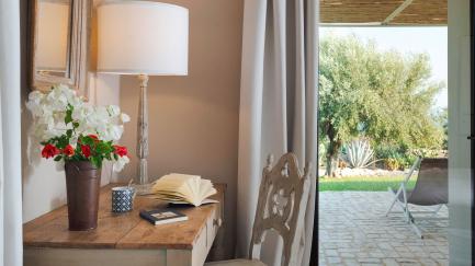 On the edge of the park, with its lawn, carob and ancient olive trees, framed by characteristic dry stone walls, the swimming pool offers an ideal opportunity for all guests to relax at the hottest times of the day.