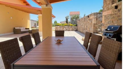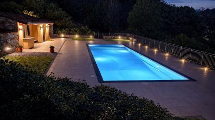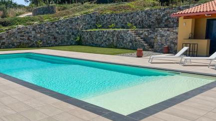 At the guests' disposal: 5 bedrooms, 5 bathrooms (one of which is external); 10 people; private pool for the exclusive use of guests (15 X 5 meters; minimum depth: 0.20 meters; maximum depth: 2.25 meters; salt purification system and counter-current swimming); solarium, garden; veranda with table and chairs for outdoor dining, barbecue, relaxation area with sauna, air conditioning, internet connection (free wi-fi), parking.