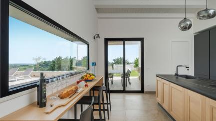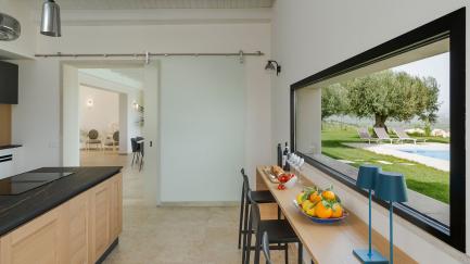 Nestled in the countryside, the house offers scenic terraces with excellent views of the surrounding natural landscape reaching all the way to the sea. The beautiful garden has a large, private saltwater pool with a sunbathing area with sun loungers and chairs: it is ideal for cooling off and relaxing for hours with friends or family in the sun. The many outdoor spaces are perfect for dining outside, whether enjoying an aperitif or a summer dinner, taking in the splendid panoramic views.