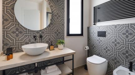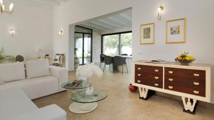 Recently renovated, the villa offers spacious, welcoming, and well-appointed interiors that are tastefully furnished. There are 4 bedrooms, each with a private bathroom, to accommodate up to 8 people. The interiors are equipped with all amenities.