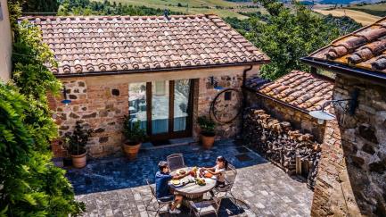 Comfortable country house in a renovated property dating back to the 1500s, perched in a scenic spot among the Val d’Orcia hills.