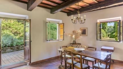 The property is nestled in the green countryside, but at the same time is halfway between Florence and Siena, and near the village of Panzano in Chianti, where there are excellent restaurants, pizzerias, and shops of all kinds.