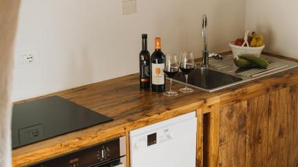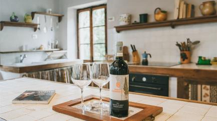 At his farm about 1 km away, the owner produces wine and olive oil, which are available for purchase.