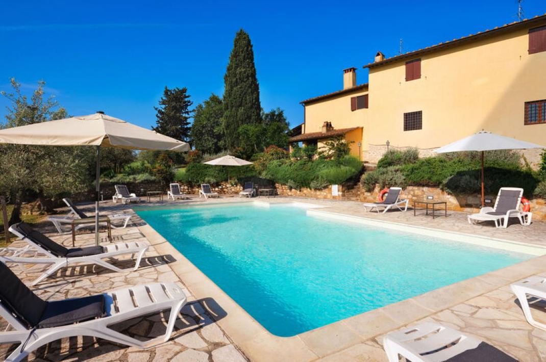 One of the most charming villas in the Chianti region, this beautifully restored farmhouse is set in a peaceful and panoramic location, offering sweeping views over the Chianti Classico hills.