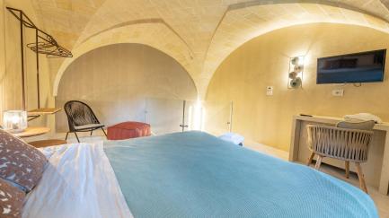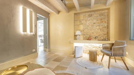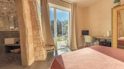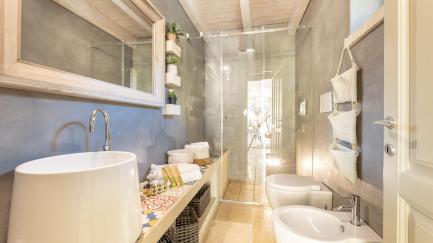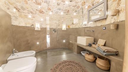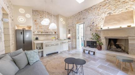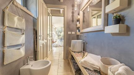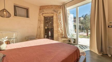 It is made up of a main villa and an independent trullo, for a total of 3 bedrooms, offering guests plenty of privacy. Outside, there is a private pool with sun loungers.