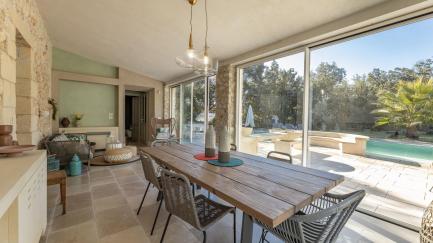 At guests' disposal: 3 bedrooms and 3 bathrooms, 6 guests; well-tended garden, private pool (10 X 5 meters, 1 to 1,40 meters deep); covered veranda; garden furniture; furnished gazebo; barbecue; Wifi internet; parking