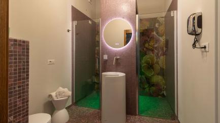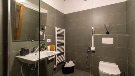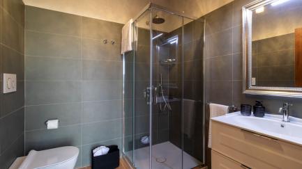 At guests’ disposal:fenced-in, private saltwater pool (13 x 7 meters; depth: 1,20 meters); 5 units (not connected on the inside) for a total of 10 bedrooms and 7 bathrooms; can accommodate up to 20 people; scenic veranda with wooden pergola, shade canopies, and outdoor dining area; barbecue; sunbathing area; magnificent panoramic views of Lake Bolsena; private garden with various relaxation areas; fitness room with gym equipment, wc and multi-sensory showers; large common lounge with billiard table, table soccer and wall projector; ping pong table; large area with kitchen and table where everyone can eat together; Wifi internet; smart TV in every bedroom; 3 units with underfloor heating and cooling system; 2 units with traditional air conditioning; covered parking for 8 cars; EV charging station.