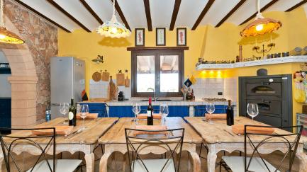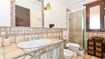 Set on two levels, the villa was built using wood, ceramic, stones following the rural culture and offering welcoming and comfortable interiors. The large furnished terraces allows the guests to enjoy the countryside athmosphere and its fresh air. The swimming pool area is equipped with sofas to relax under the sun in total privacy. The farm has a vegetable bio garden from which guests can take products to cook and eat..