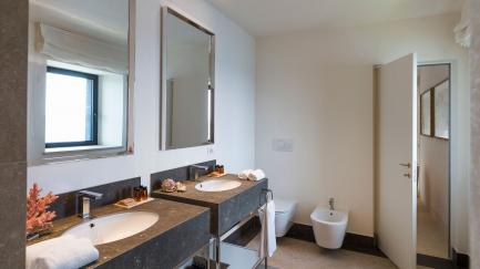 At guests’ disposal : private saltwater pool (13 x 6,5 meters; minimum depth: 0,20 meters; maximum depth 1,35 meters); the pool can be heated up to 26° from 01/03 to 30/11; 4 bedrooms and 5 bathrooms; barbecue; gazebo and furnished outdoor dining areas with panoramic views; air conditioning; Wifi internet; pool house (changing room, bathroom with shower); sunbathing area; private garden; parking