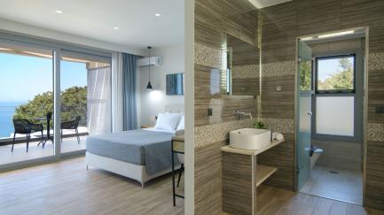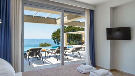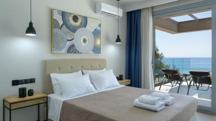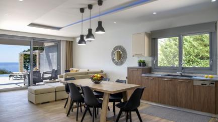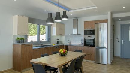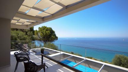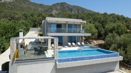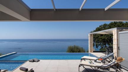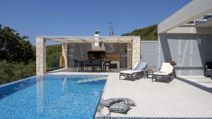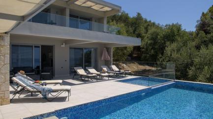 Exclusive vacation villa rental with a private pool in Corfu. Villa Alkyoni is surely one of the most beautiful and modern villas along Corfu island’s southwestern coast: it offers fantastic views of the sea and sunset. Enjoy panoramic views of beautiful natural scenery from the villa’s terraces and pool, and make use of the modern amenities. The villa offers 3 bedrooms and modern interiors to comfortably accommodate up to 6 people.
