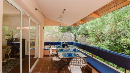 Outside there is a large garden with a lovely private pool; you can relax in the veranda’s dining area, and on the terraces you can enjoy beautiful natural scenery reaching as far as the sea