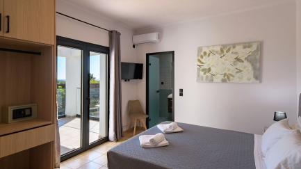In the nearby town of Agios Mattheos you’ll find tavernas and food shops. Within a 2 km radius there are the beautiful beaches of Alonaki and of Chаlikounаs (οr Hаlikounаs), an enchanting stretch of golden sand that separates Korission Lagoon from the sea and is very popular with surfers and kite surfers for its wind exposure.