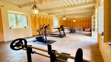 The Villa is distant only 10 minutes from Pisa and 5 minutes from Lucca and from the motorway’s entrance which leads to Florence (75 kms), to the Versilian Coast (20 km to Viareggio beach, 28 km to Forte dei Marmi) and to many other important Tuscan cities. The airport of Pisa is at about 20 kms; 2 km to the nearest village for grocery shopping; 2 km to Bar, coffee shop, restaurant, pizzeria; 5 km to Supermarket; 4 km to tennis court and even less time to horseback riding; 3 Golf courses at 40 minutes in Montecatini, Forte dei Marmi, Tirrenia (Pisa); also nearby are the elegant “Terme di San Giuliano” for spa treatments and thermal waters.