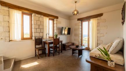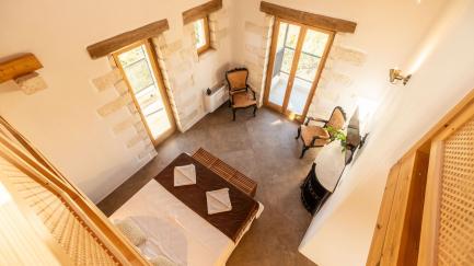 Villa Falcos is newly built, with two floors of tastefully furnished, traditional Cretan style interiors. It offers 1 double bedroom with access to a loft with 2 single beds, and all modern amenities to accommodate up to 2/4 people.