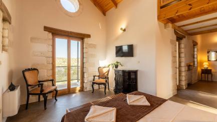 On the grounds, there is a lovely outdoor dining area and a beautiful private pool where you can relax and have fun with friends and family on hot Cretan days.