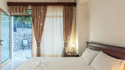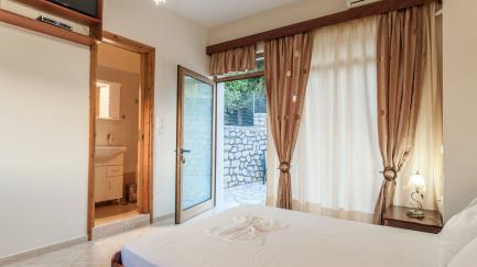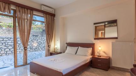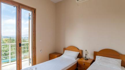 Villa Giorgos consists of one building with 2 apartments and a studio, that are all rented together to one group of friends or family. The three units have, respectively, 3 bedrooms, 2 bedrooms, and 1 bedroom; in total they can accommodate up to 11 people. The simple, functional interiors are equipped with all amenities.