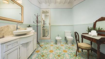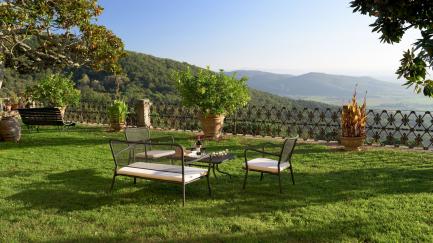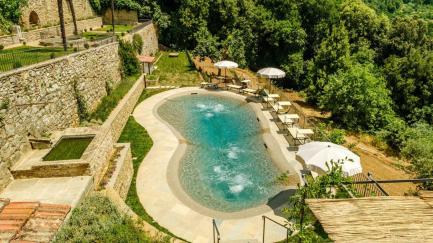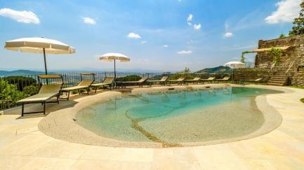 At guests' disposal: 5 bedrooms, 5 bathrooms; sleeps 10; irregularly shaped pool reserved for the exclusive use of guests with hydromassage jets (72 m2; maximum depth 1.40); solarium equipped with sunbeds and umbrellas; large garden with an area equipped for outdoor dining with table and chairs (not covered); mobile barbecue and wood oven, parking within the property, panoramic view, air conditioning, Wi-Fi internet connection.