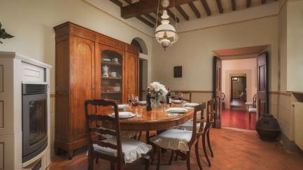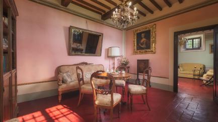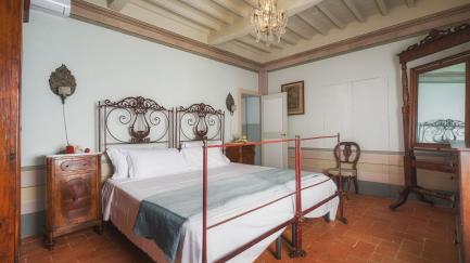 Beautiful historic residence located near Cortona, a characteristic village on the Tuscan hills. By renting this ancient home, you will enjoy a magnificent stay immersed in history and beauty, thanks to a breathtaking view and absolute privacy. Villa Laparelli Pitti is furnished with beautiful antique furniture but has been recently renovated to offer guests all modern comforts. The villa can accommodate up to 10 people in 5 bedrooms, all with private bathrooms. Outside, it offers a large garden with many plants and flowers. The garden houses a brand-new, splendid private pool with a panoramic solarium: a perfect place to relax in the sun or cool off during hot summer days while admiring the beautiful Tuscan landscape. Villa Laparelli Pitti represents an ideal base for exploring the entire Cortona area, easily reaching historical locations in Tuscany and nearby Umbria such as Arezzo, Siena, Lake Trasimeno, Val d'Orcia, Perugia, Gubbio, and Assisi. Near Villa Laparelli Pitti, there is another building that remains empty and unused during the rental season, ensuring complete privacy for guests.