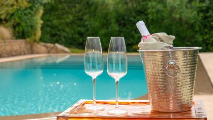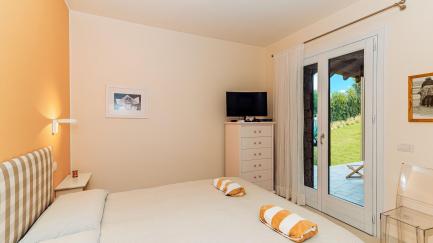 At guests’ disposal: private pool with whirlpool corner (10 x 4 meters; maximum depth: 1,7 meters; minimum depth: 0,50 meters); veranda with a table and chairs for dining outside; sunbathing terrace with panoramic views; 3 bedrooms and 3 bathrooms; 6 people; garden, barbecue, Wifi internet, air conditioning, parking.