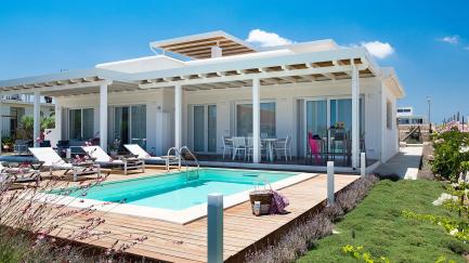 Surrounded by a well-kept garden and large, panoramic terraces with sea views, this beautiful, cosy house has a small private swimming pool.