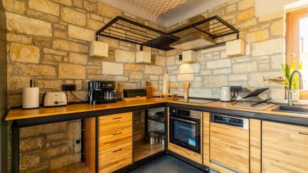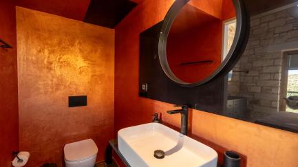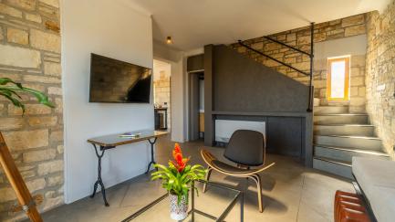 Villa Seiri is newly built, with two floors of tastefully furnished, rustic style interiors.