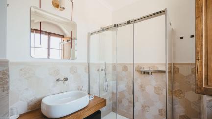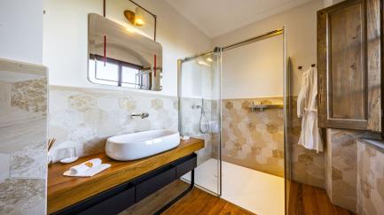 On the grounds, there is a lovely garden where guests can enjoy panoramic views of the surrounding hills. A furnished barbecue area is at your disposal for outdoor meals. The scenic, private pool is just 50 m from the villa and can be heated upon request.