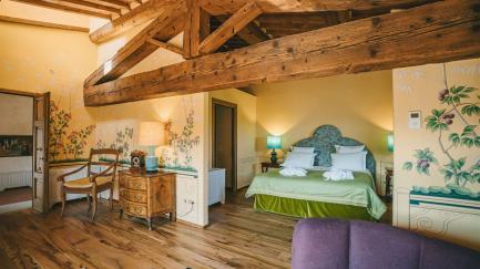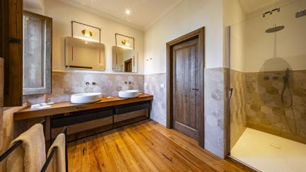 At guests’ disposal : 7 bedrooms, each with a private bathroom, sleeps 14; private pool, heated upon request (12 x 3 meters; depth : 1.5m; heatable for a fee to up to about 26°C); converted hay loft with changing room, shower, bathroom and Finnish sauna; private garden; outdoor area with pergola, furnished with table and chairs for dining outside; barbecue; Wifi internet; breakfast included (8.30-10.00 am); air conditioning; private parking on the farm.