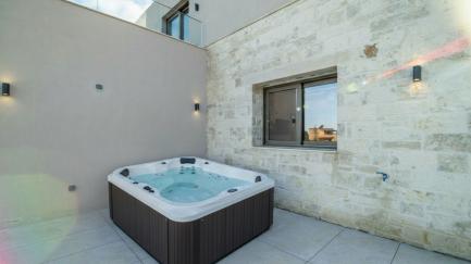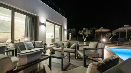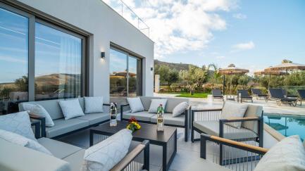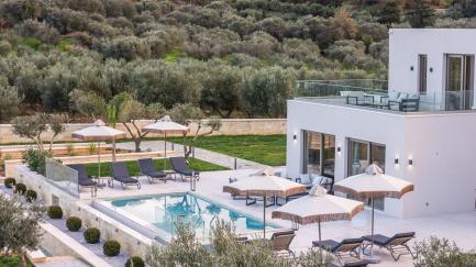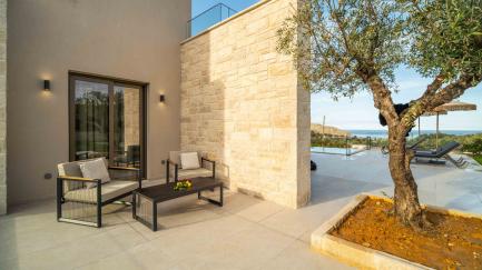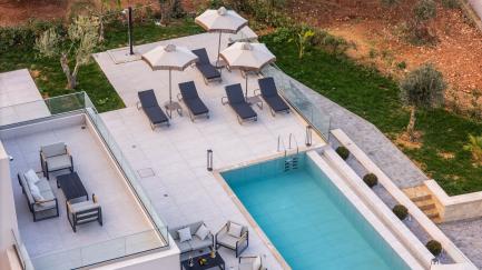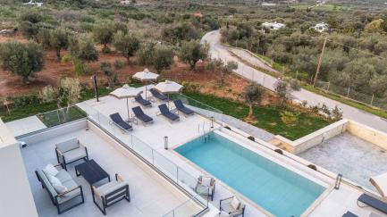 Villa in Crete with sea views, an outdoor Jacuzzi, a private pool and 5 bedrooms that can accommodate up to 10 people.