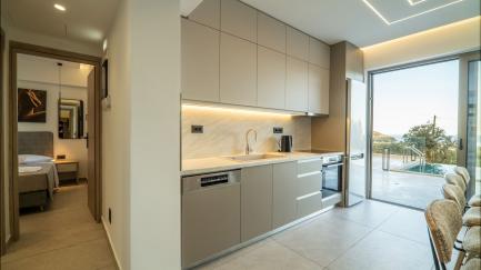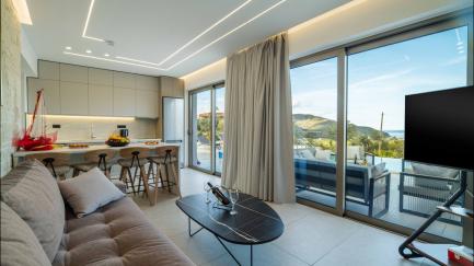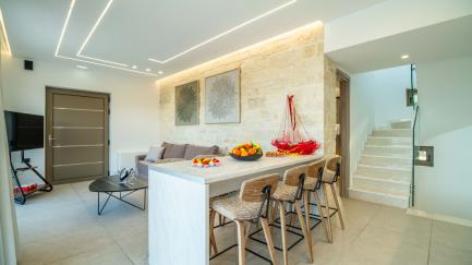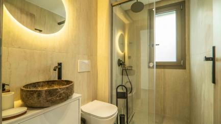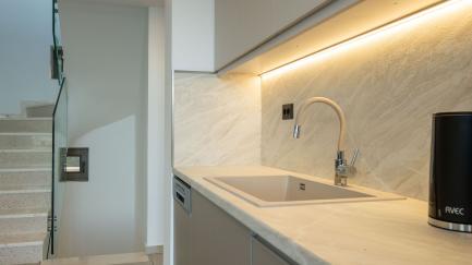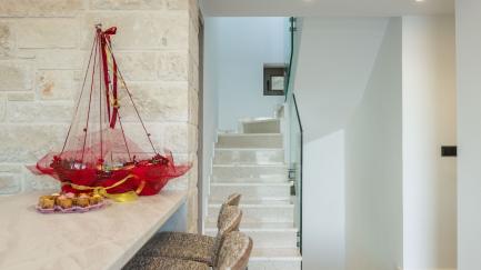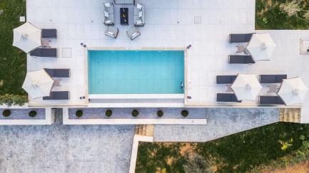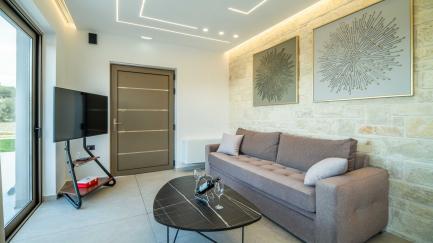 Construction of the villa was finished in January 2026, and the villa offers a scenic pool with panoramic views of the sea and the countryside. Inside, the villa has 3 floors and a total of 5 bedrooms: two on the first floor, two on the ground floor, and one on a lower floor that is just as comfortable and well equipped. A comfortable indoor dining area offers beautiful views of the pool, countryside, and the sea. There is also an outdoor area furnished for al fresco dining.
