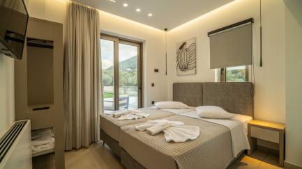 At the disposal of Villa Vasilissa guests: private garden; private pool (8 x 4 meters; depth 1,50 meters); 5 bedrooms and 3 bathrooms; air conditioning; panoramic sea views; Wifi internet; parking.